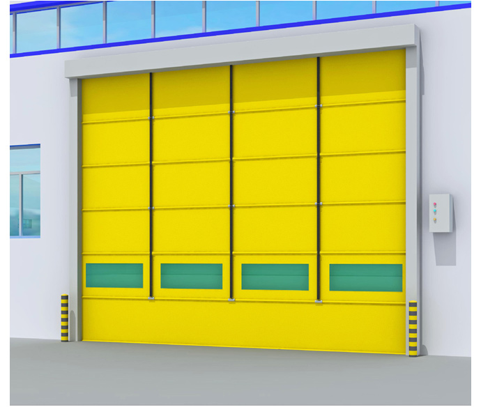 堆積式快速門是快速門當中構(gòu)造很簡單的一種門型,堆積式快速門一般的組成部分是由動力提升機頭、簾布、抗風桿、立柱、伺服電機、控制箱這幾部分組成。簾布的材質(zhì)是由1.2mm的單層pvc簾布制成,中間以抗風桿加固,其運行速度達到0.8m/s,相對來說構(gòu)造簡單,功能上只能起到防風防塵隔離作用。