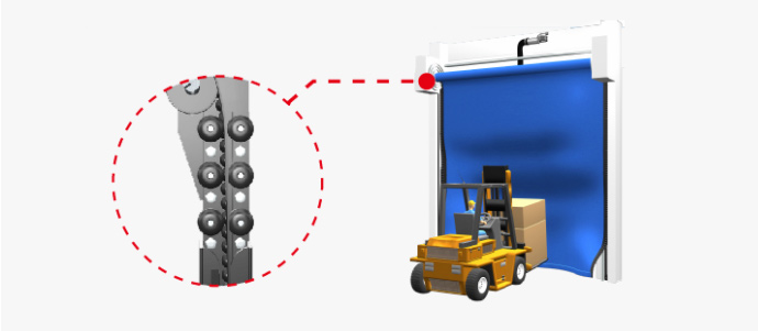 2.采用拉鏈將織物與側(cè)框?qū)к壵w連接起來,實現(xiàn)更好的密封性能和氣密性。當(dāng)發(fā)生事故碰撞時,織物可以從導(dǎo)軌上走出來,然后自動返回。這減少了日常維護(hù)。