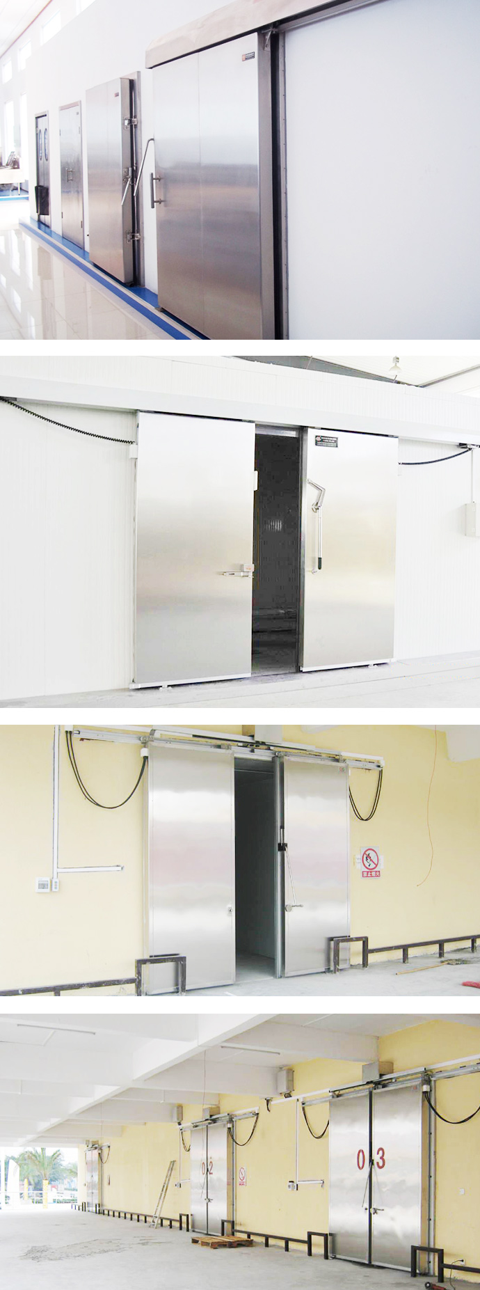 冷藏門板是一個全封閉的整體框架結構,剛性聚氨酯泡沫,不銹鋼門窗內外,也有:涂漆鋼板、鍍鋅板。